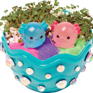 Your kit comes complete with everything you need to grow your own Axolotl-themed mini garden, including potting mix, seeds, stickers, decorative sand and two glow-in-the dark axolotl figurines.