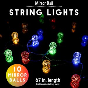 Transform any space into a dazzling wonderland with Fizz Creation’s Mirror Ball String Lights! This enchanting set features ten vibrant lights, each emitting a mesmerizing array of colors. Powered by batteries for easy portability, these lights will add a magical touch to your gatherings and bring joy to your home decor.