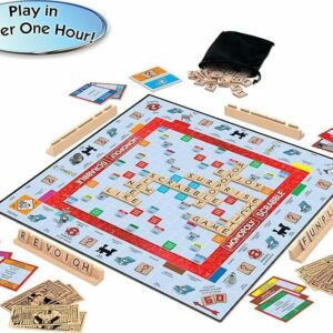 Experience the totally unique gameplay of Monopoly® Scrabble®— the innovative game that combines the best elements of the Monopoly® game with the crossword-building play of Scrabble®. In place of rolling dice to move around the board, players build words and move ahead by their score. Build a word on a premium space and claim a Monopoly® property. Clever gameplay twists, along with custom Community Chest and Chance cards, keep things moving at a fast pace. The winner is the player with the highest total of cash and property value when the last letter tile is played.