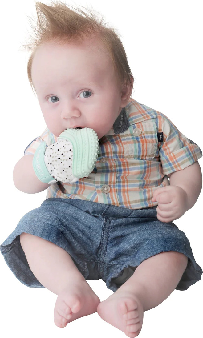 - Hands-Free Teething: Munch Mitt liberates your baby from the discomfort of teething by placing the teether right on their hand. This hands-free design means your little one can self-soothe anytime, anywhere, without the fuss of constantly picking up fallen teethers.