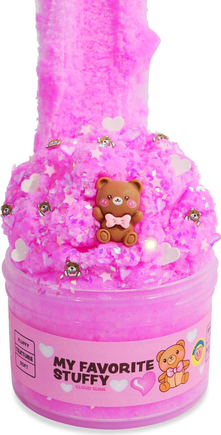 Squeeze, stretch, relax! This viral new line of soft, scented Peachybbies slimes melts stress for kids and grown-ups… and it’s made in the USA! Experience the fun of My Favorite Stuffy Cloud Slime with a soft, fluffy texture and a cheerful bubblegum sugar scent. This 7 oz resealable pink slime comes with adorable teddy bear and heart charms and mix-ins for a delightful, comforting adventure that brightens any dreary day.