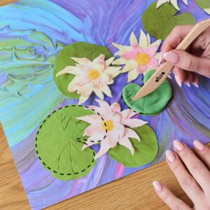 Now you can create your own water lilies by combining colors as you see and feel them. All four of your senses will be engaged in the process, and the video tutorial will make it even easier and more enjoyable.
