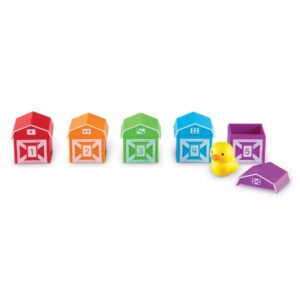 There’s more than hay inside these barns— there’s farmyard learning fun! Kids learn counting, color, matching, and sorting skills during every imaginative adventure with the farm friends found within the Peekaboo Learning Farm. Each of the set’s 5 numbered two-piece barns comes in a different vibrant color, including red, orange, blue, green, and purple. Each barn also pops open to reveal 5 different animal finger puppets— meet the set’s friendly cow, pig, duck, and more! Unlike many toys for toddlers, the Peekaboo Learning Farms grows along with your little one— build new fine motor skills during early games of pretend, then move on to early math and color identification! Find the animals during games of hide and seek, make your own memory game, or just let your imagination go! The Peekaboo Learning Farm’s two-piece barns also help kids build coordination and other fine motor skills every time they pop them open or snap them shut.