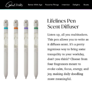 Lifelinesâ„¢ writing tools combine the calming effects of touch with breathtaking aromas to expand your thinking and spark creativity. Discover the Lifelinesâ„¢ collection of tools designed to harness the power of your innate stress relievers: your senses.