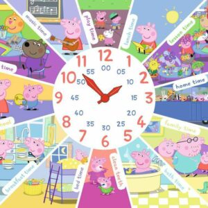 Help your child learn about the concept of time with our “Peppa Pig Tell the Time” jigsaw puzzle with movable clock hands!