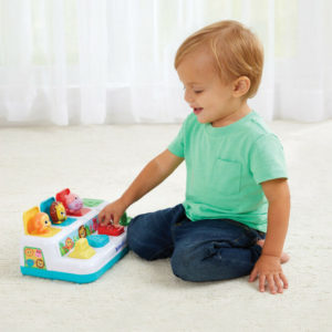 With the Kidoozie Pop ‘n Play Animal Friends set your child can start identifying wild animals like monkeys and more! Each little door comes with its own number in its own color. Below that are dots representing that number and the corresponding button in the same color. It helps children with matching and identifying numbers to jump-start the counting process.