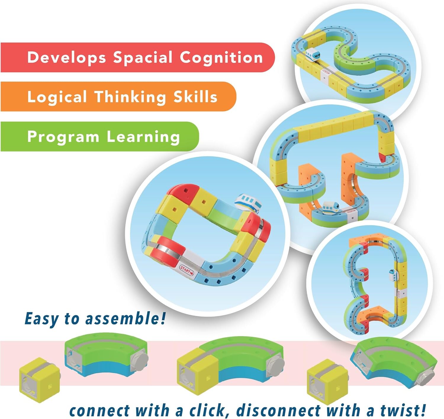 With a simple click, the magnetic blocks snap together, and with a quick twist they disconnect, creating a smooth and customizable monorail system. The included mini train glides effortlessly up, down, and upside down along the tracks, powered by imagination and magnetic force, ensuring hours of fun!