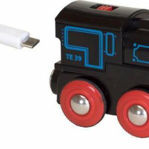 Never run out of steam with the Rechargeable Engine. This battery-power toy train features simple-to-use forward and backwards motion, as well as a headlamp to light up the way. To charge the engine, simply plug it into any normal USB socket using the mini USB cable. When the red light stops blinking, it’s fully charged and ready to go again.