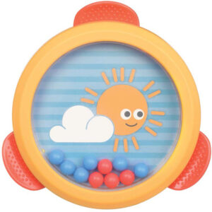 Bring musical entertainment to tummy time! These adorable drum-shaped sensory toys have bright colors that encourage babies to lift their heads and reach out their arms. (Developing these muscles will help them roll over, sit up, crawl, and walk!) The toys rock and roll as babies push and grab them, and the colorful beads make entertaining sounds. We love the cute sun and moon graphics!