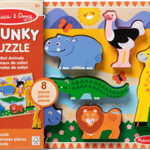 | Features | Chunky wooden puzzle in a safari theme Eight extra-thick puzzle pieces Promotes hand-eye coordination, fine motor skills and creative expression |
