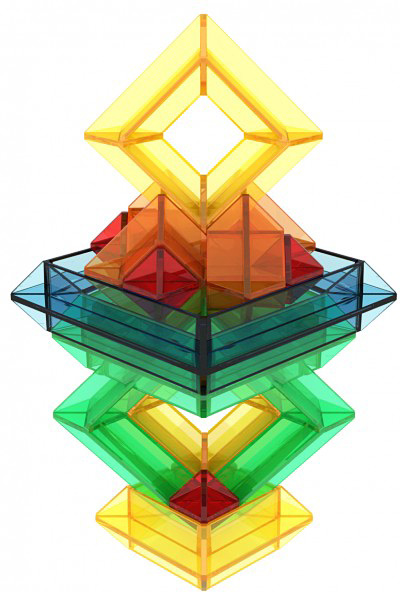 Stack, nest, and interlock the 15 translucent colored blocks to create a wide variety of patterns and shapes.