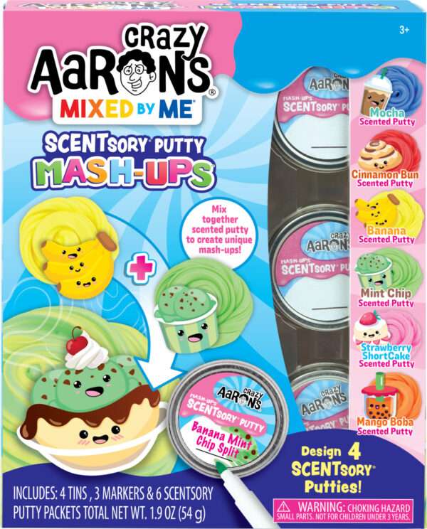 Make four of your very own Crazy Aaron’s SCENTsory Putty Mash-Ups! The possibilities are endless with the six varieties of scented putty. Mix different scents together to make one crazy combo! Design a label with the included markers and name your creation!
