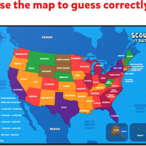 • Discover and learn fascinating facts about the USA as you guess to win the US state card!