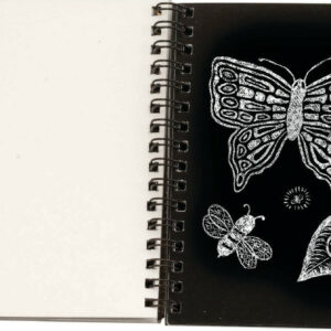 Use the stylus to doodle and draw in this compact spiral-bound book. It’s filled with 16 Scratch Art pages (8 multicolor, 8 silver holographic) and is easy to throw in your backpack–so you never need to leave home without Scratch Art! Includes wooden stylus.