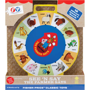 A classic from Fisher Price, introduced between 1957-1971, children learn about 12 different animals and the sounds they make. Fun, easy, compact–just right! For ages 18-36 months