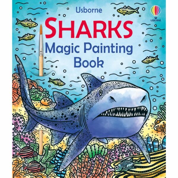 Packed with action scenes of different types of sharks hunting, leaping and cruising among coral reefs, kelp forests and open oceans. Spot baby sharks emerging from their eggs, and a small and sneaky epaulette shark creeping up a beach! Use the brush provided to sweep water over the designs and vibrant paints magically appear. A mess-free way to keep children busy, perfect for travel. Simply tuck the waterproof back flap under each page as it’s painted, to stop water from seeping through to the rest of the book.
