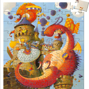 A brave knight battles the dragons to save the princess in her castle. A superb 54-piece puzzle in a stylish castle-shaped box.