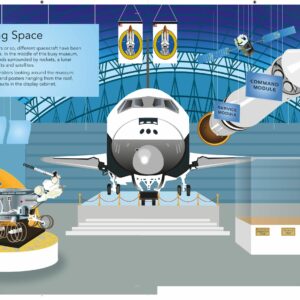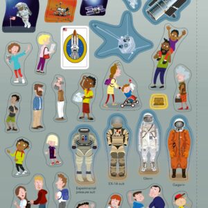 A lighthearted look at space travel, from the scientists at Mission Control to astronaut training, lift-off and life on the International Space Station. With over 250 stickers of astronauts, scientists, rovers, rockets and even whole galaxies to add to the colorful scenes. Children can add stars to the night sky, position astronauts and footprints in a scene depicting the first Moon landing and fill a spaceship with mysterious aliens. A humorous – and informative – guide to space travel which will delight any small astronaut-in-training.