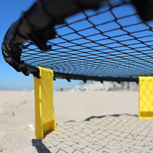 Spikeball is a relatively new game that is played 2 on 2. It’s sort of a funky combo of four square and volleyball. A taut Hula Hoop-sized net is placed at ankle level between a pair of two-player teams. You smack the palm-sized ball down on the net so it ricochets up at your opponents. They have up to three hits between them (just like volleyball) to control it and bounce it back to you. When they miss, you score. First team to 21 wins. Great for athletes cross training for Lacrosse, Tennis, Ultimate Frisbee, and for athletes who do Crossfit. Spikeball is a great outdoor, indoor, beach, grass, sand, backyard, camping game for adults, and kids.