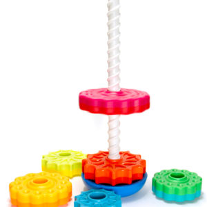 Drop the vibrant discs onto the threaded corkscrew pole and go ooooh as they spin fast and smooth to settle onto the reversible base.