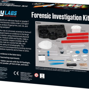 - Discover hidden secrets with the UV flashlight, fingerprint powder, pH test strips, and more