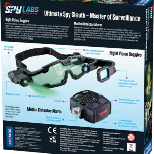 Conduct secret missions and surveillance under the cover of night! With these night vision goggles, you are ready to investigate cases and hunt for evidence. Observing a secret nighttime meeting? With the fold-out magnifying lens and scouting scope, you can see details even from a distance. Searching a crime scene in the dark? The green LED headlamp simulates night-vision technology and allows you to see more clearly in the dark! You can also detach the headlamp and use it as a flashlight.