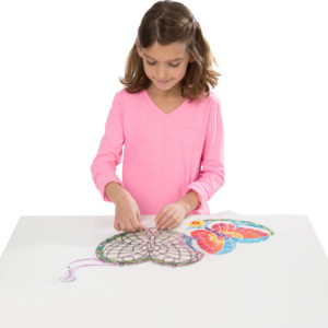 This peel-and-press sticker craft gives kids everything they need to easily create a spectacular piece of “stained glass” art. Just hold up the sheet of colored stickers to the clear frame, peel them off one at a time, and stick them on. Grooves and outlines on the frame make it easy to fit each sticker–featuring realistic textures like bubbles or swirls–into just the right spot. Use the included cord and suction cup to hang the finished artwork in a sunny window to see the beautiful butterfly shimmer to life. Young artists will be enchanted by the results and proud to show them off!