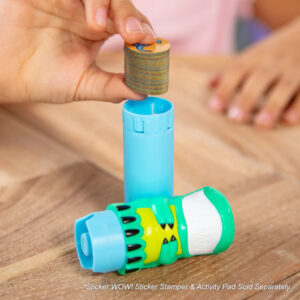 Wow! A whole new way to play with stickers! Use the cute dinosaur sticker stamper to place prehistoric-themed stickers on the activity pad. We love that the activities help kids learn counting, matching, and object recognition.
