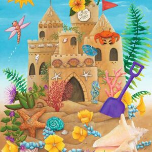 Light up your little one’s day with our “Sunshine Sandcastle” puzzle and watch them warm up to screen-free fun! This whimsical scene features a sandcastle decked out with shells, flags and more plus a cute crab standing guard. A large conch shell, scallops and a friendly starfish are scattered nearby, while seagulls, a dragonfly and smiling sun fill the sky. Jigsaw puzzles help develop hand-eye coordination, fine motor skills and problem-solving while delivering tons of fun all year round!