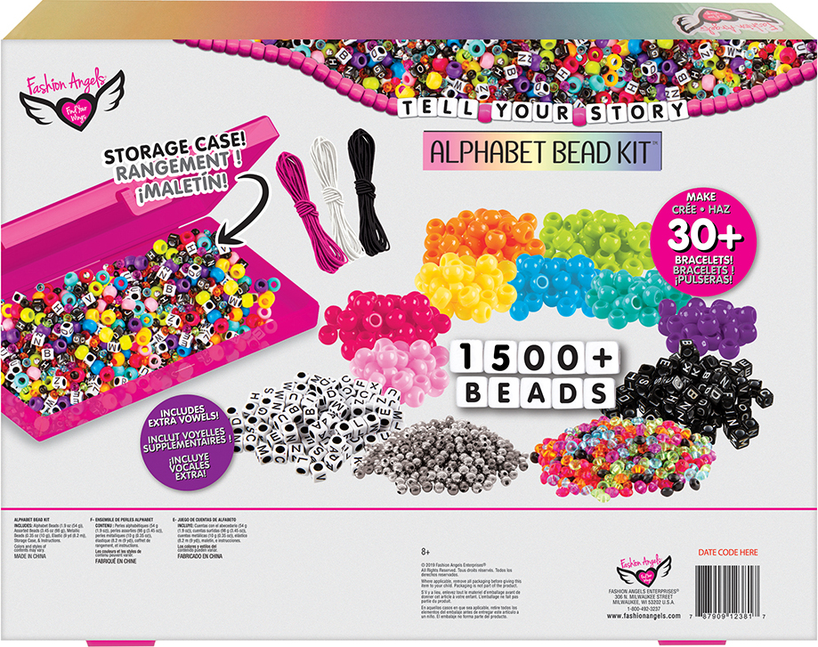 Wear your story on your wrist when you design a message or name bracelet using the many different styles of alphabet and colorful accent beads included in the Tell Your Story Alphabet Bead Super Set from Fashion Angels. With over 1500 beads and 3 colors of elastic cording, the possibilities are endless to create your message bracelets using this kit. Get creative and figure out your favorite things, your mantra, or even your goals and start designing 30+ bracelets with all of the supplies included in this kit. You can even use this kit to start your own alphabet bead bracelet business! Entrepreneurship starts right here.