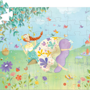 A beautiful princess enjoys spring out on her swing in a field full of flowers. A superb 36-piece puzzle in a stylish princess-shaped box.