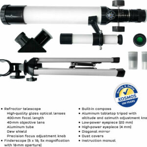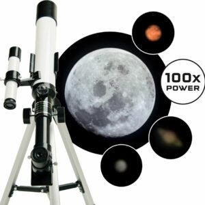 Astronomical Telescope with 100x Magnification, Finderscope, Compass, Aluminum Tabletop Tripod, and Instruction Manual