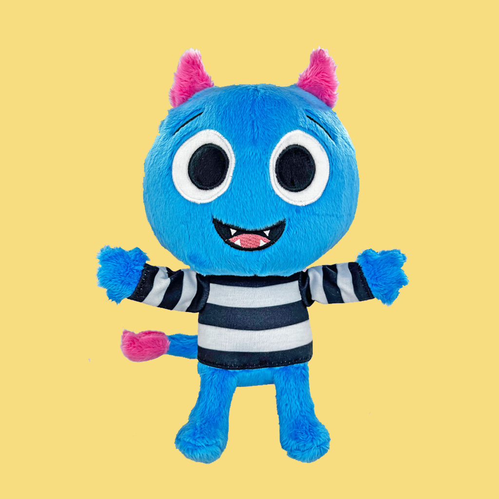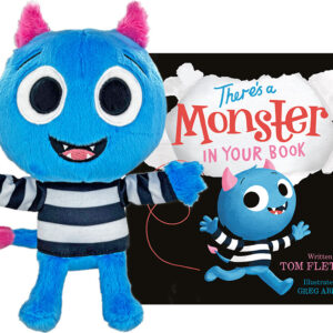 There’s a Monster in Your Book! is from the popular Who’s In Your Book series, created by Tom Fletcher. Now you can act out this hilarious book with your very own matching plush Monster! Measuring 10″ tall, Monster is made with bright fuzzy blue fabric, bold embroidered details, black and white striped shirt, and a pink-tipped tail. Whether you shake, tickle, wiggle, or read to your Monster, you’ll be happy this monster jumped off the page and into your arms!