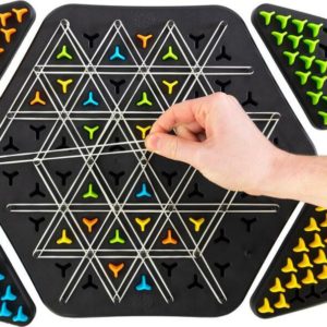 Their moves become your win in this territory-grabbing challenge! On each turn, players stretch a rubber band across four pegs. Whenever you complete a triangle, you get to claim it as your own with one of your tokens. Strategy skills will be stretched. Deception will be intertwined into every move. Do you have the brains to claim the most triangles and win? Discover game skills Pythagoras would be proud of with Triggle!