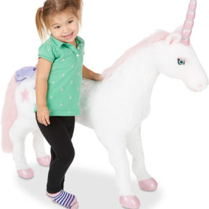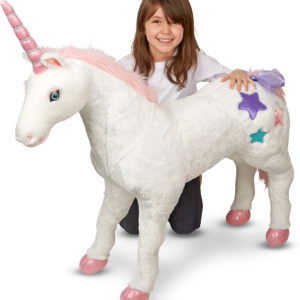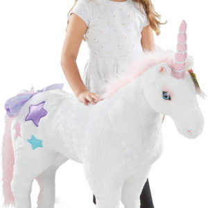 This graceful unicorn will prance right into any child’s collection — and heart! With its pretty pink mane and tail, both scattered through with shimmering silver strands that catch the light, this enchanting friend is sure to become a new favorite. Additional irresistible details include super-silky plush fur, satin star decorations, beautiful blue eyes, and a soft, shiny horn.