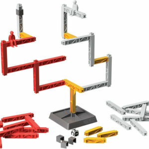 Upstruction. Do you have what it takes to work the high steel and win? Use your I-Beams to reach for the sky. Use the Stop Work Signs to block your opponent and the Crossbars to turn their work into yours. As you build, your worker climbs higher and higher. But beware… One beam placed out of balance and the whole thing could come toppling down! Only the cleverest and luckiest will reach the highest and win.