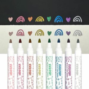 Rock out with this set of paint markers! Non-toxic, water based paint markers come in a cool metallic sheen, so they’ll give your masterpiece a little extra glow. Designed to stay on porous surfaces like paper, wood, cardboard, rocks, and more, these multi surface metallic paint markers can be cleaned off of smooth surfaces like glass, glazed ceramic, and whiteboards. Eight markers are included in all, so be bold, be bright, and be creative with this metallic set!
