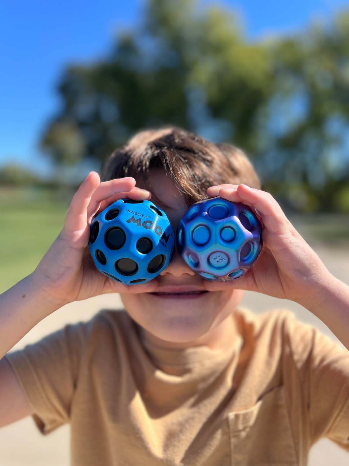Every bounce of this Moon Ball is out of this world! Compete with friends and family in trick shot challenges or enjoy gravity-defying, bouncy games of catch. The craters on the shimmery metallic surface create an oh-so-satisfying “pop” noise when it bounces. Moon Balls are best sellers, ready for on-the-go-fun at a handy 2.48″ size. Available in 3 metallic colors: red, blue, and green; each sold separately.