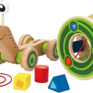 Hape’s Walk-A-Long Snail is the perfect companion for little ones just getting into sorting shapes and learning about colors! The Walk-A-Long Snail is a googly-eyed snail with a block-holding shell which spins on the snail’s back when your little one pulls it along. One side of the shell has three differently-shaped holes (triangular, circular, and square) for your youngster to practice shape sorting, while the other side has an elastic-banded opening to allow for easy removal of shape blocks from the snail’s shell. The shell is removable, ensuring functional fun while also preventing pinched fingers. From Hape for ages 12 months+