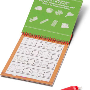 This exciting activity book includes four reusable pages and a refillable water pen. Use the pen to fill in each activity, from coloring in boxes to tracing letters, and see hidden colors and pictures appear with every stroke! Then simply let the page dry to erase the pictures and fill it in again and again. This alphabet-themed book includes every letter of the alphabet (uppercase and lowercase) to trace, alongside pictures of familiar objects to illustrate each sound.