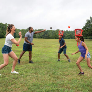 Do I look silly? I’m just using my head to win this fast moving, frivolous tossing game! For 2 teams of 2 players, indoors or out. Includes 2 inflatable baskets with straps and 8 balls. Just try not to laugh!
