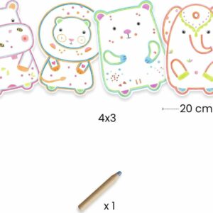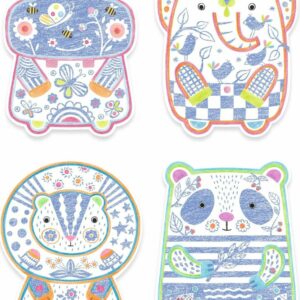 A pocket with 12 pictures to be colored in using a jumbo colored pencil, perfect for little ones. Color in the wild animals using the pencil to reveal what’s hidden. It’s magic: the pencil only marks certain areas, uncovering patterns and revealing surprises!