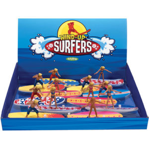 Get stoked with our wind up surfers! Thanks to their hidden wind up motor, they don’t need a wave to take on the surf in your ocean, pool, or bath tub. Our Surfers sport an assortment of wicked boards, suits and hair-dos. Each sold separately.