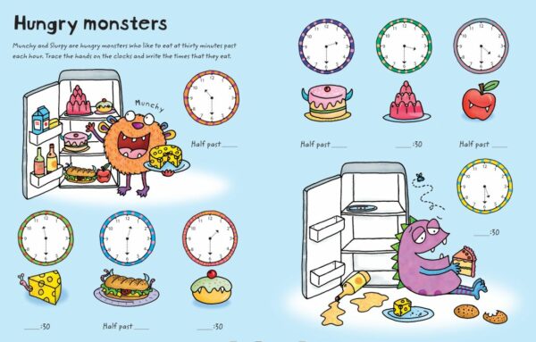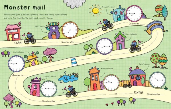Children can join a host of friendly monsters and learn to tell the time in this fun, reusable book. The topic of time is introduced in a gentle and reassuring way, with clear illustrations and engaging activities. The durable, wipe-clean pages allow children to practice what they’ve learned again and again.