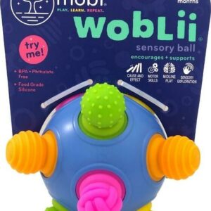 Push, pull, chew, wobble, roll and chase! WOBLII is a simple, yet multi- dimensional ball that is designed to grow with your children as they develop! Little hands will be occupied for hours once you introduce them to WOBLII Sensory Ball’s push ‘n pull nubs, bright sensory textures, woblii-ability, endless fun!