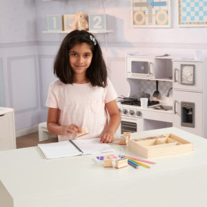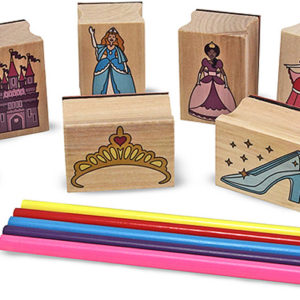 When your little princess is ready to have a ball, she will love designing her own royal adventures with this exquisitely detailed stamp set. A two-color stamp pad, five colored pencils and nine fabulously regal stamps are all packed in a sturdy wooden tray.